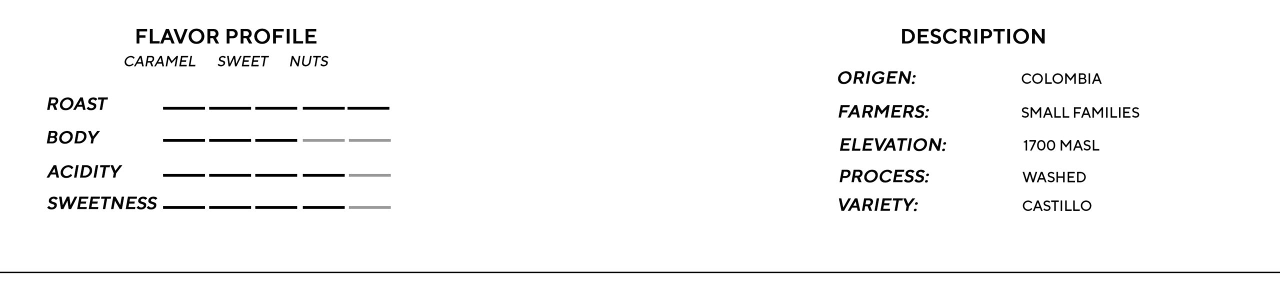 Café con notas de caramelo, naranja dulce y nueces